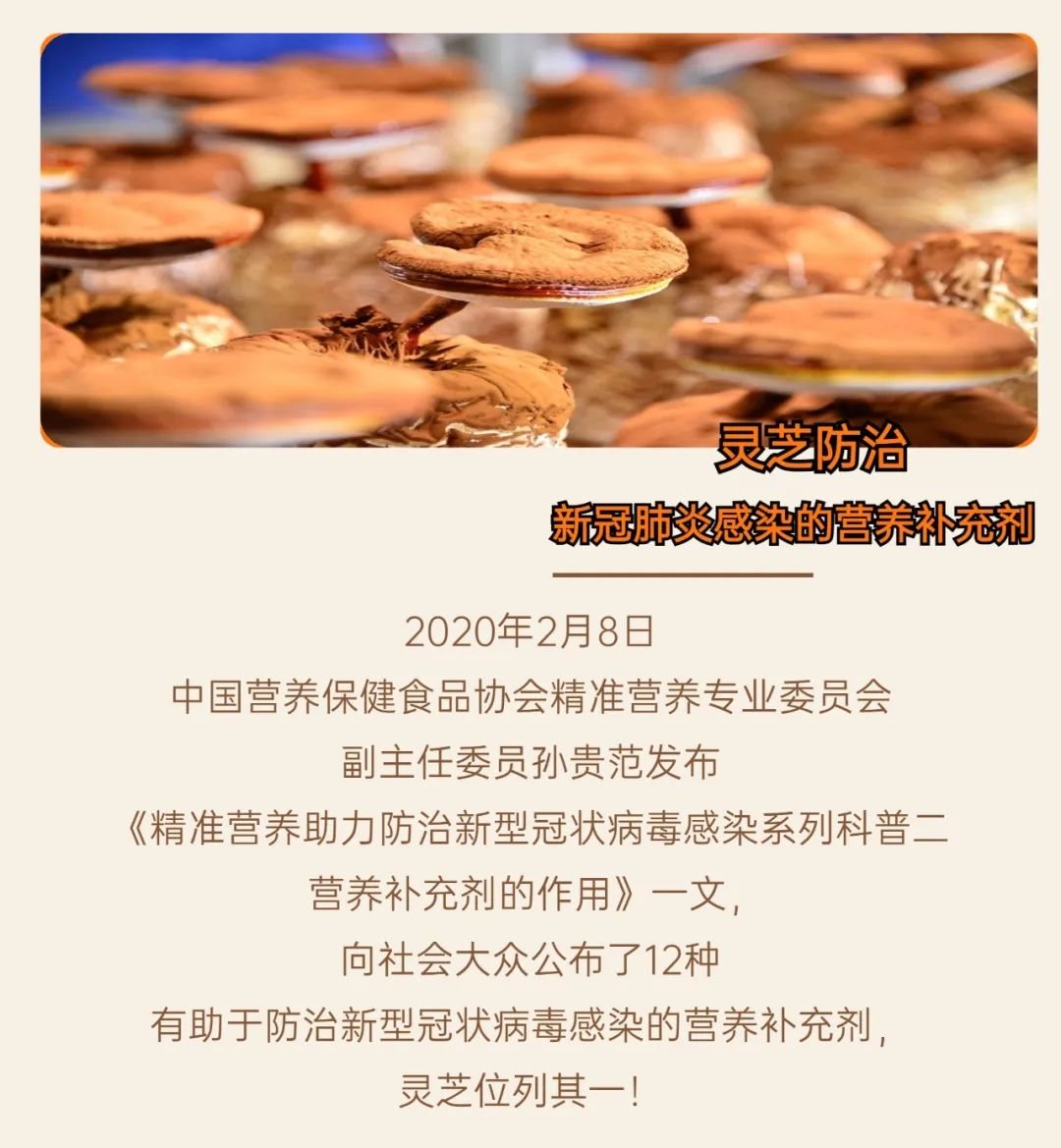 重磅消息!靈芝被推薦為防治新型冠狀病毒感染的營養(yǎng)補充劑!